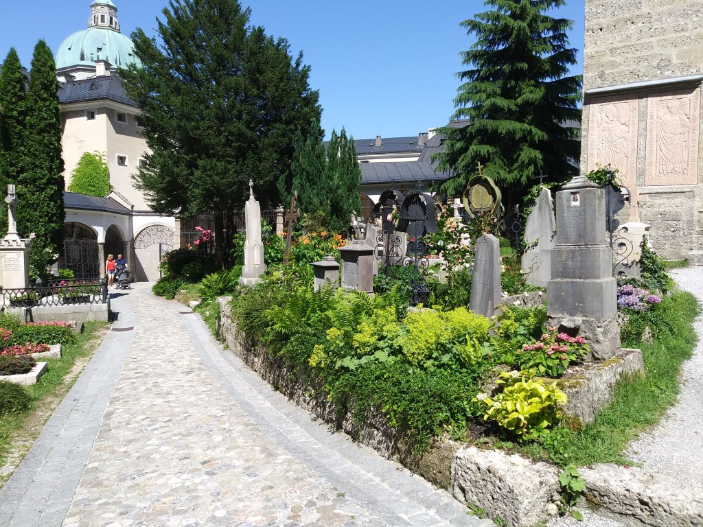 We started walking towards the old town area. Along the path we came upon the monastery where a portion of “The Sound of Music” was filmed. We also walked through the cemetery that is in the film close to the end of the movie. What is interesting is that these burial sites are rented. As long as the family pays rent, the grave stone remains. Failure to pay rent results in the grave stone being removed and the site becoming available for someone else. The body is not removed, but someone else can now be buried there and have a grave stone installed. The bodies are all cremated. We got into the old downtown area and ate supper at an Irish pub.